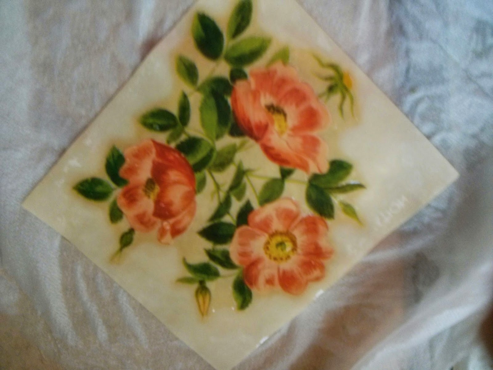 A while back I showed a metal tray that I picked up at Ikea because I fell in love with the color. The design was kind of blah, but it was cheap and the color was lovely. So I got to thinking that I could vintage it up with a Meyercord decal.